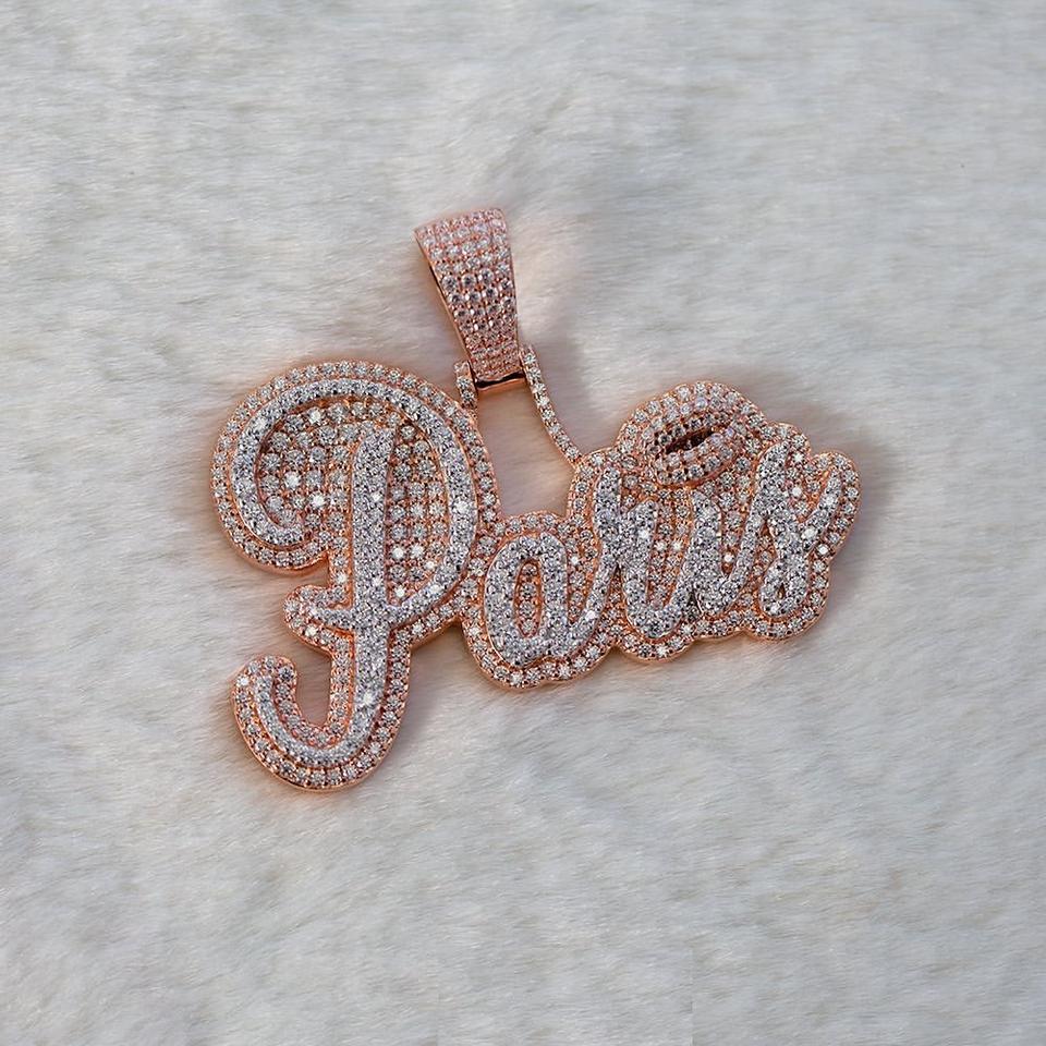 จี้มงกุฎเย็น2นิ้วพร้อมเพชรโมอิสซาไนต์ตัดเจ้าหญิง14K สีเหลืองทองสไตล์ฮิปฮอปตัวอักษรตัวอักษรเพชร