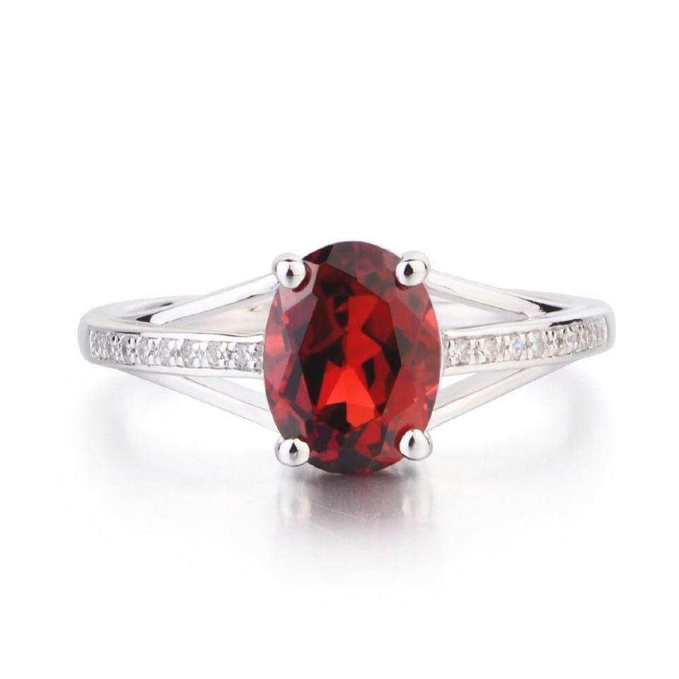 ปรับแต่งได้ทุกแบบ ชุดแหวนแต่งงาน 3 วง ชุบทอง 14K ประดับพลอยโกเมนธรรมชาติ ทรงโอเวอร์ไซส์ 6 มม. ประดับเพชรแบบฮาโล ไซส์ 4-13