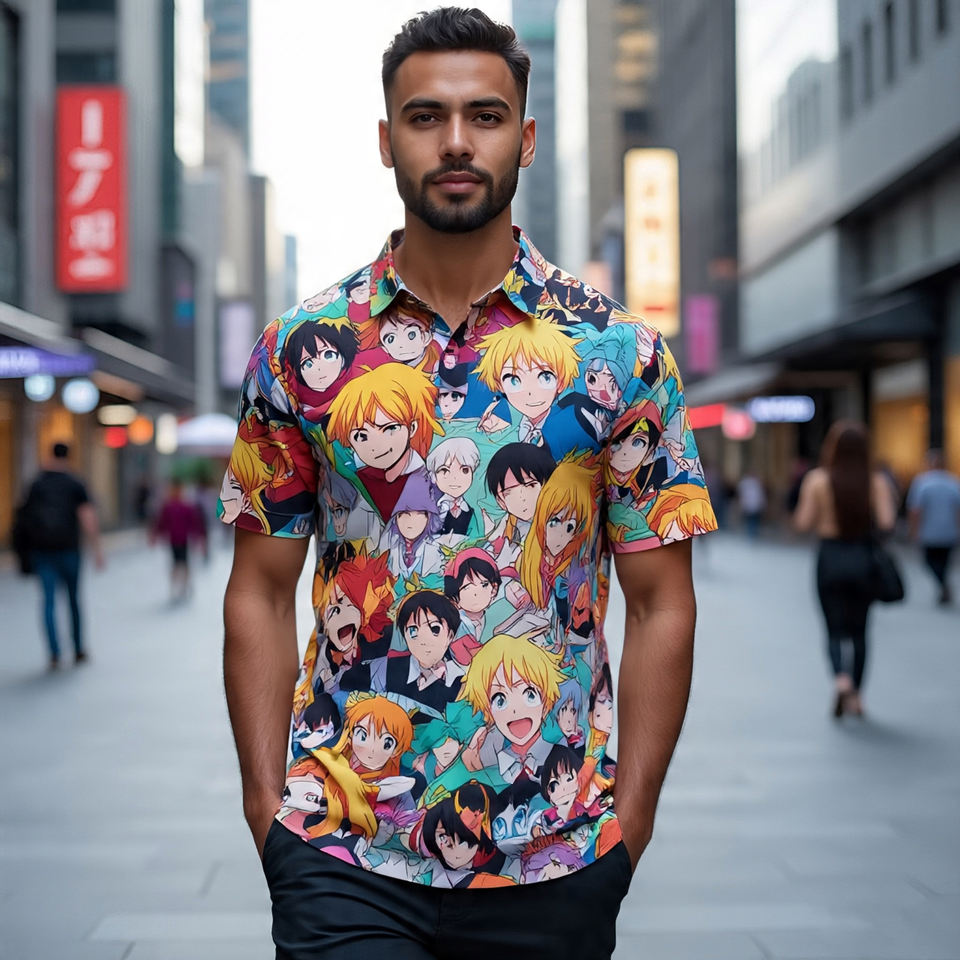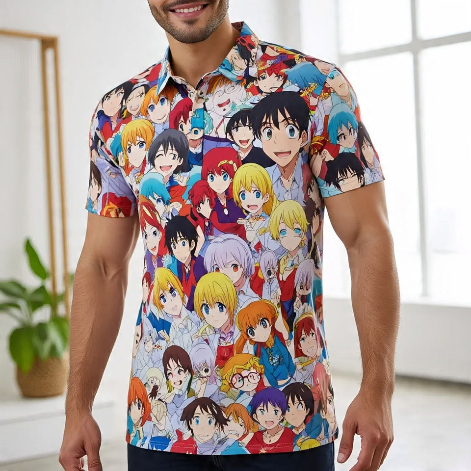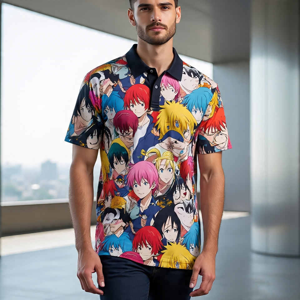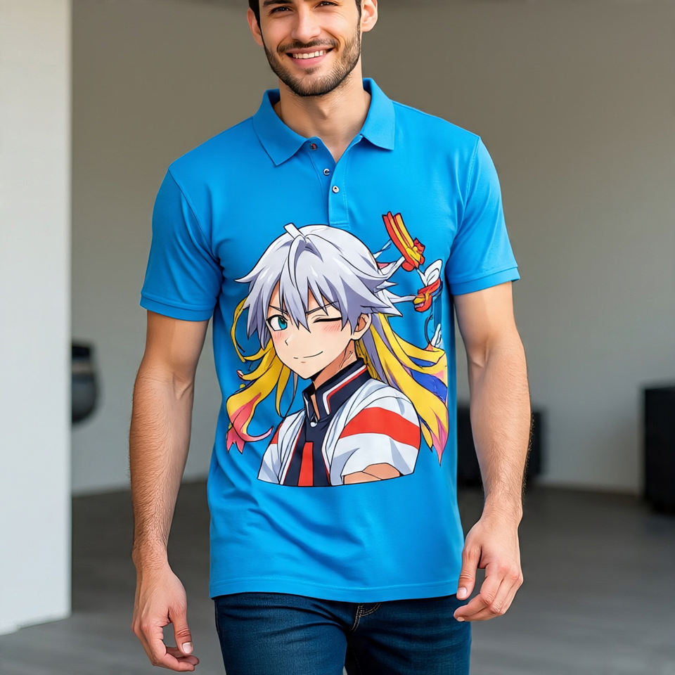 เสื้อโปโลชายพิมพ์ลายอะนิเมะ