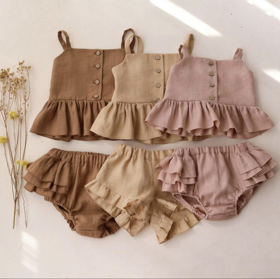 ชุดเด็กอ่อนฤดูร้อนแบบกำหนดเอง เสื้อผ้าเด็กแรกเกิดแขนกุดผ้าฝ้าย กางเกงขาสั้น เสื้อท่อนบน ชุดลำลองเด็กสองชิ้น