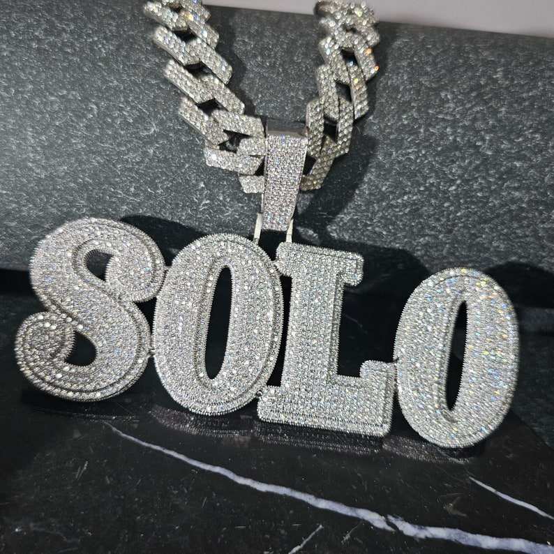 จี้เพชรเม็ดใหญ่แบบกำหนดเอง สร้อยคิวบันโลหะผสมสังกะสี สร้อยคอแบบกำหนดเอง ของขวัญสำหรับเขา เครื่องประดับฮิปฮอปส่วนบุคคล