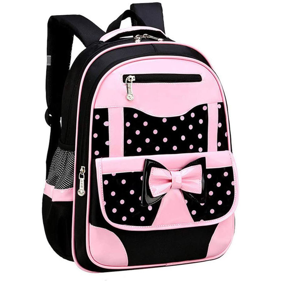 ชุดกระเป๋าเป้สะพายหลังสำหรับเด็กนักเรียนหญิง,กระเป๋าใส่หนังสือลายจุดรูปคลื่นมีโบว์สำหรับใส่ไปโรงเรียน