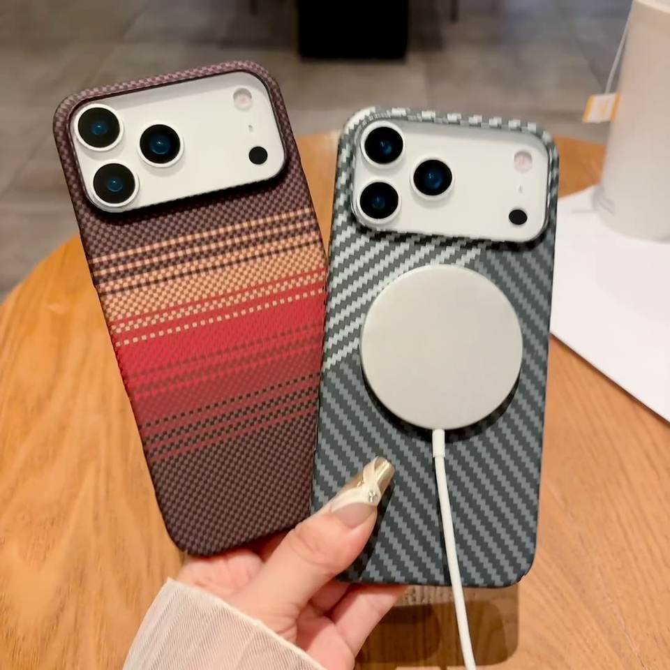 เคสพื้นผิวคาร์บอนไฟเบอร์ปรับแต่งได้สำหรับ iPhone 17 PRO MAX aramid Fiber เคสโทรศัพท์แม่เหล็กชาร์จแบบไร้สายสำหรับ Apple 16 15 14