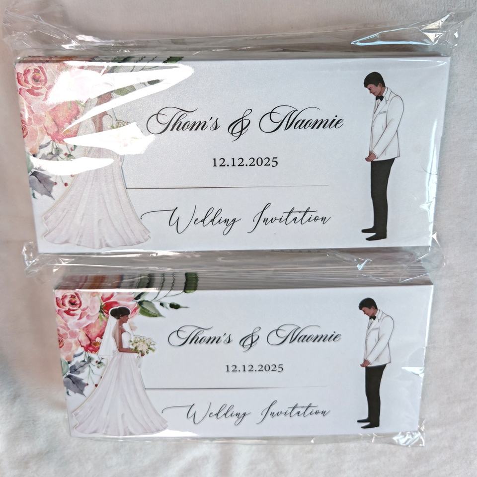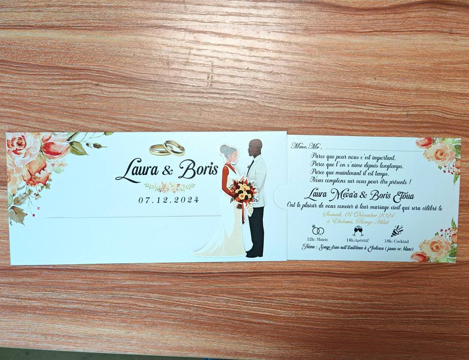 การ์ดเชิญงานแต่งงานแบบเลื่อนสำหรับคู่บ่าวสาวผิวสีเข้ม ปรับแต่งได้ พร้อมซองแบบดึงออกได้ พิมพ์ลายการ์ดเชิญแบบดึงออกได้