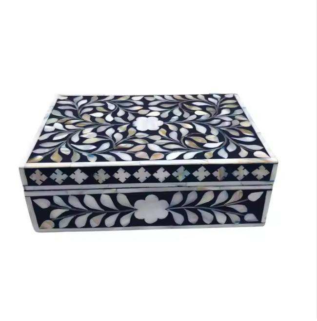 กล่องเครื่องประดับฝังกระดูกในกล่องเครื่องประดับฝังกระดูกแบบ2025สลักลายใบไม้สีดำและสีขาวสำหรับตกแต่งบ้านตามสั่ง