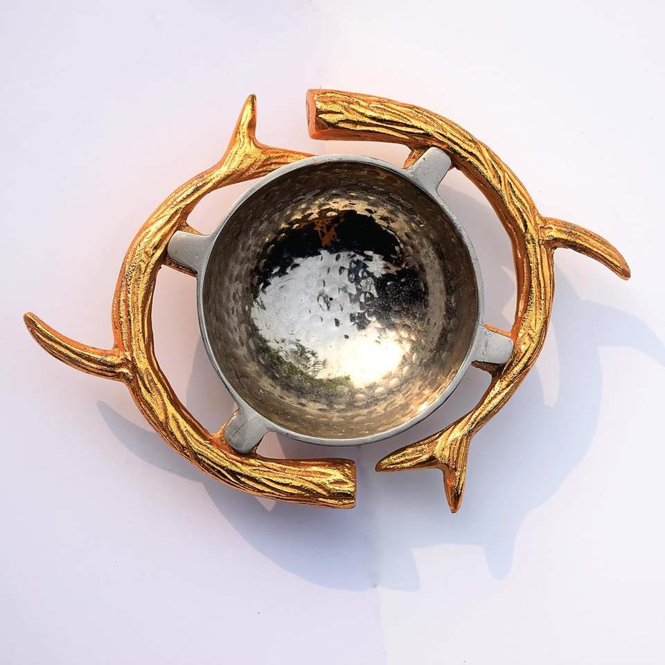 อุปกรณ์ทานอาหารค่ำทำจากทองเหลืองแบบโบราณของตกแต่งโต๊ะชามเสิร์ฟผลไม้ทำจากทองเหลืองชุบทองออกแบบได้ตามที่ต้องการ