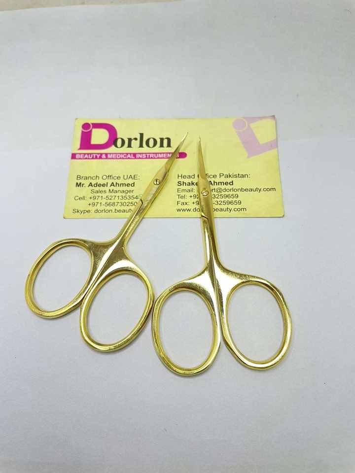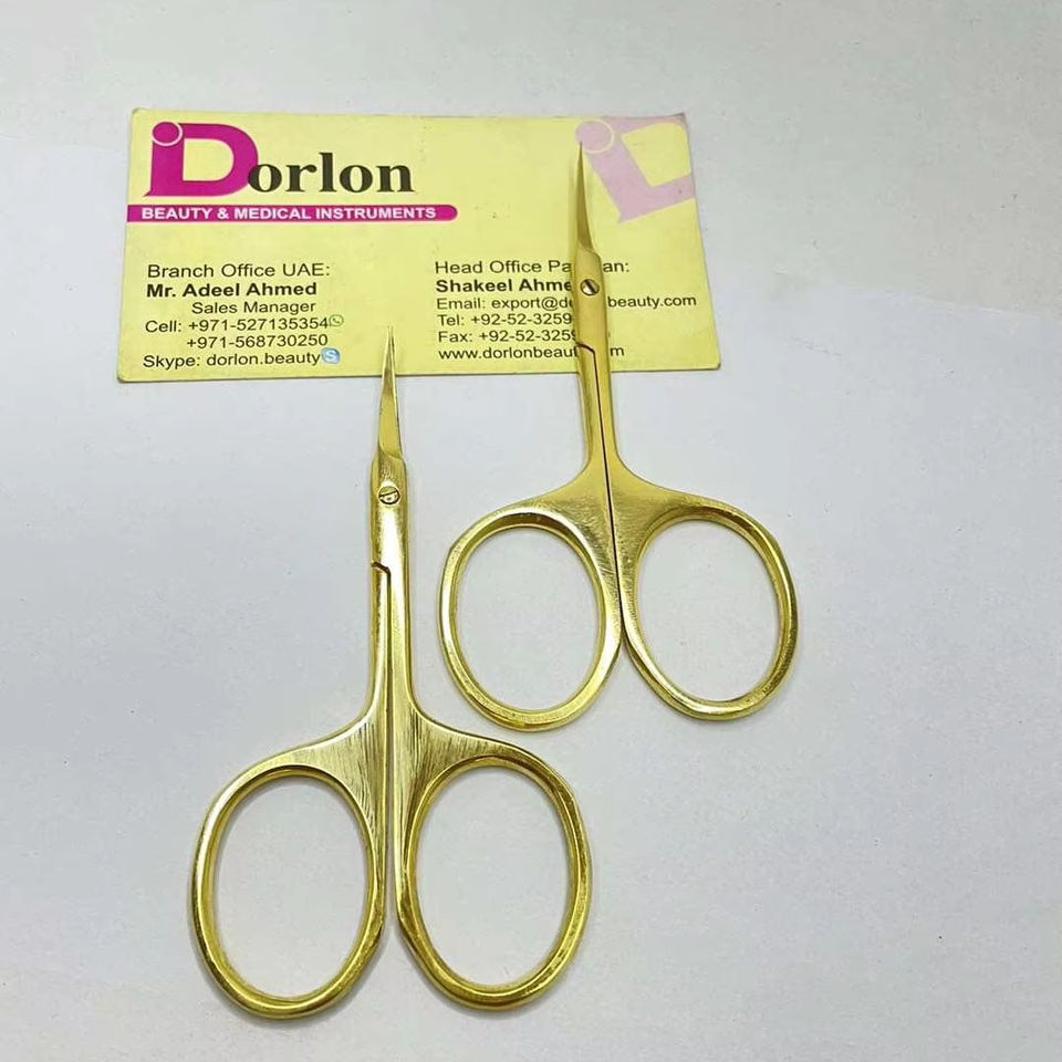 กรรไกรแต่งเล็บโลโก้พร้อมเคลือบทองเงาและใบมีดโค้งสแตนเลสคมดีไซน์เล็กจากปากีสถาน