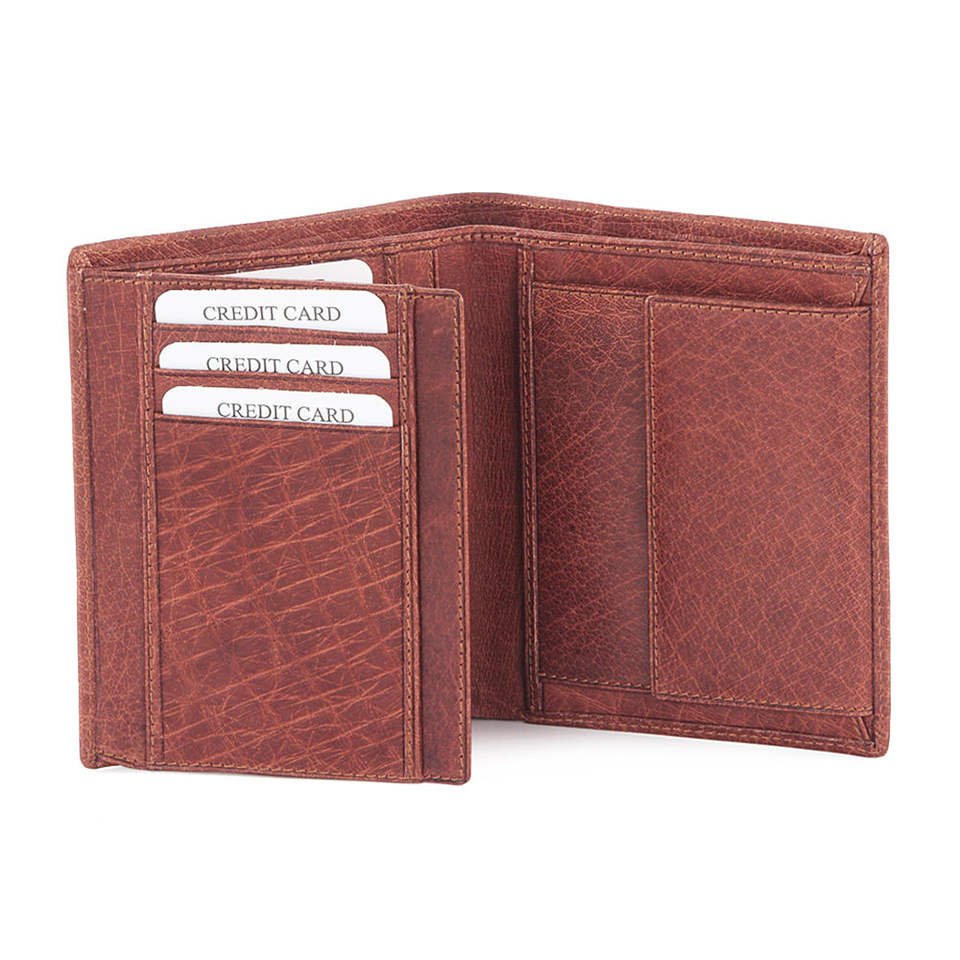 กระเป๋าสตางค์หนังแท้แบบเปิดบางเฉียบ ดีไซน์วินเทจ ป้องกัน RFID สำหรับใส่บัตรเครดิต กระเป๋าใส่บัตรโพลีเอสเตอร์ขนาดเล็กสำหรับผู้ชาย ปรับแต่งได้ตามต้องการ
