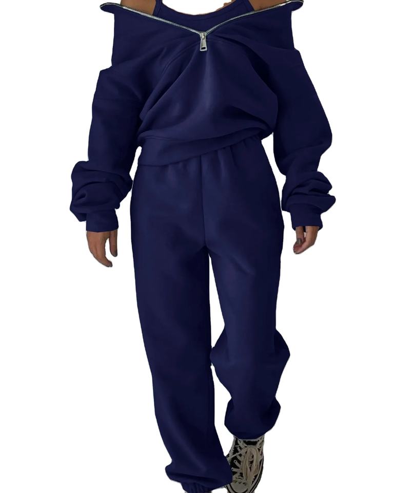 ชุดวอร์มผู้หญิง2ชิ้นระบายอากาศได้ดีแบบมีซิป