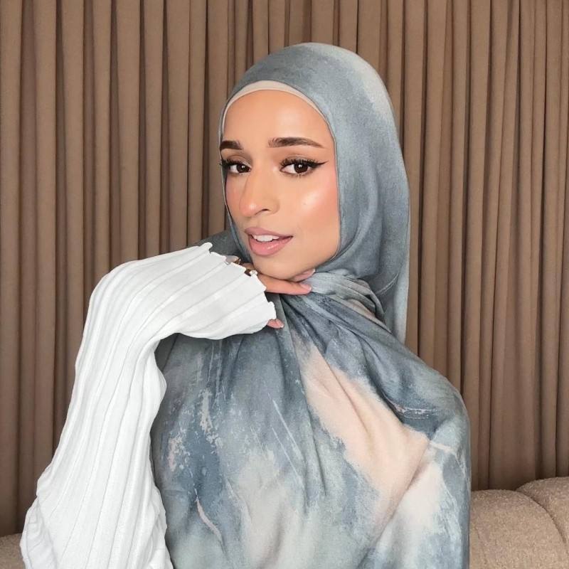 ฮิญาบผ้าโมดอลพิมพ์ลายดอกไม้สำหรับมุสลิมผ้าโมดอลระบายอากาศได้ดีผ้าโมดอลพิมพ์ดิจิตอลแบบอิสลาม