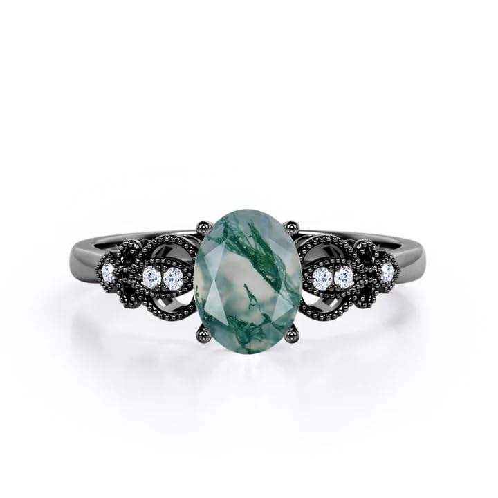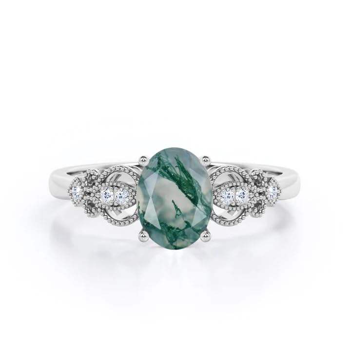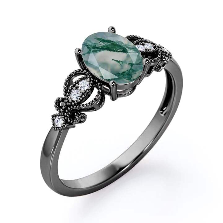 แหวนหมั้นทรงรีประดับมอสกรีนอาเกต เงินแท้ 925 ชุบทอง ดีไซน์ลายวนสลักแบบกำหนดเอง แหวนแต่งงานคลาสสิก