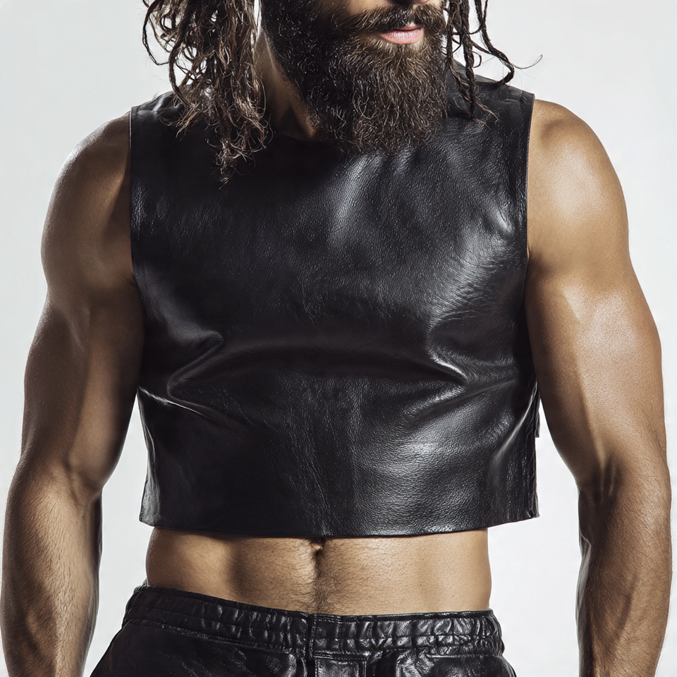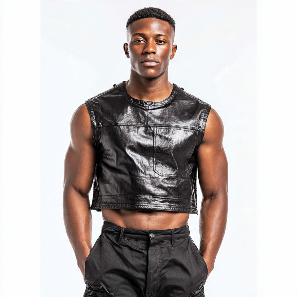 ชื่อผลิตภัณฑ์:เสื้อครอปหนังแฟชั่นผู้ชาย
