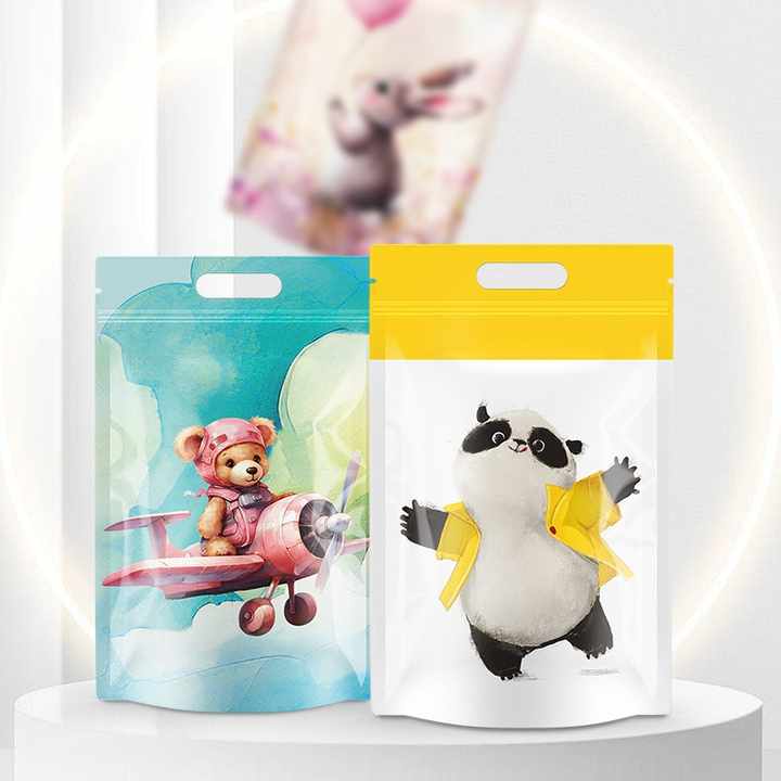 ถุงซิปล็อคใส่ขนมแบบใหม่ ลายการ์ตูน สำหรับขนมปังกรอบ ขนมหวาน นูกัต ขนมขบเคี้ยว แบบตั้งได้ ปลอดภัยสำหรับอาหาร