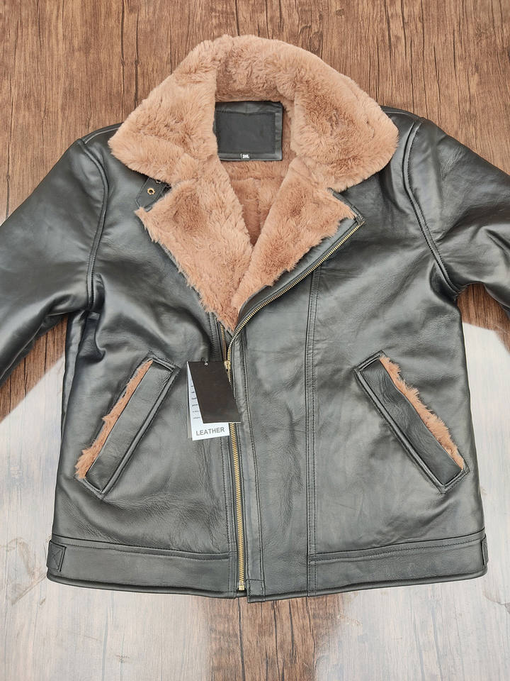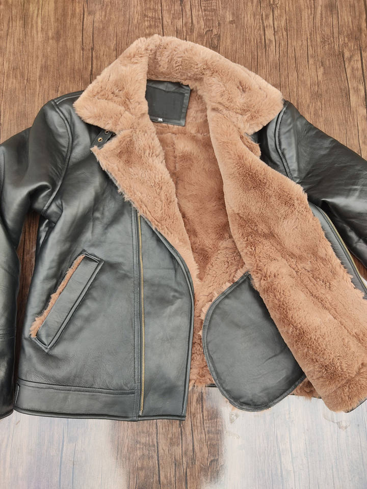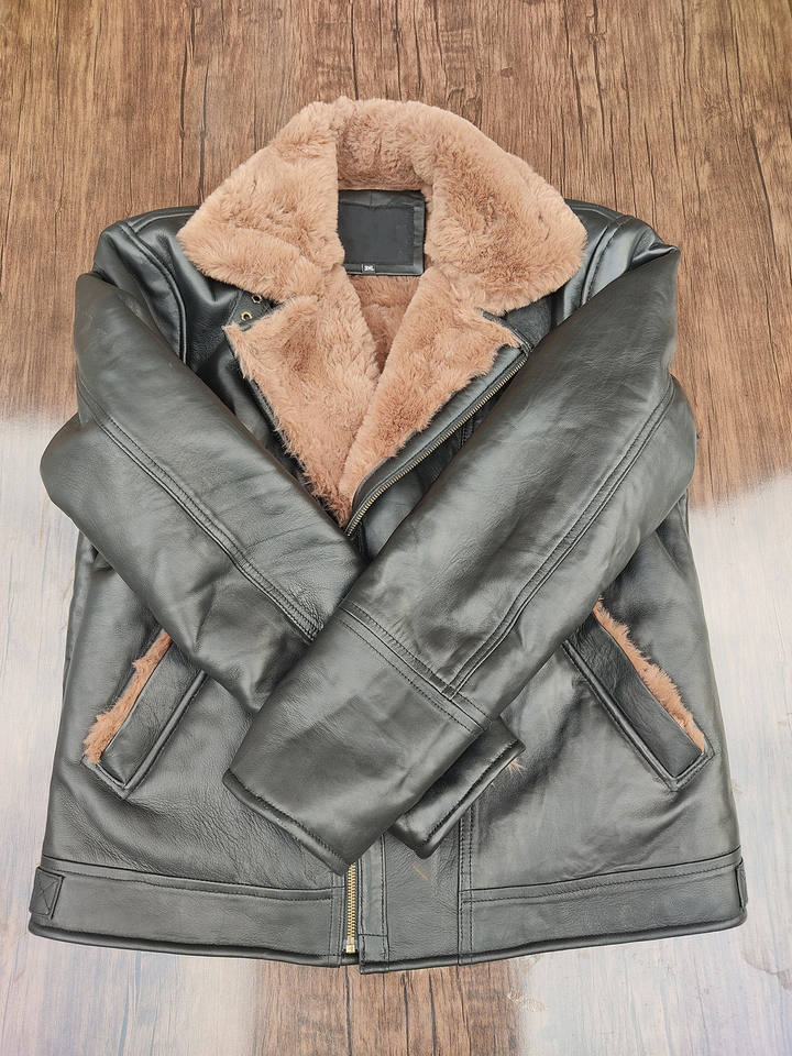 แจ็คเก็ตหนังแท้แบบมีซิปสำหรับผู้หญิง ดีไซน์ใหม่ ปรับแต่งสไตล์ขนเฟอร์ กันลม พร้อมระบบทำความร้อน