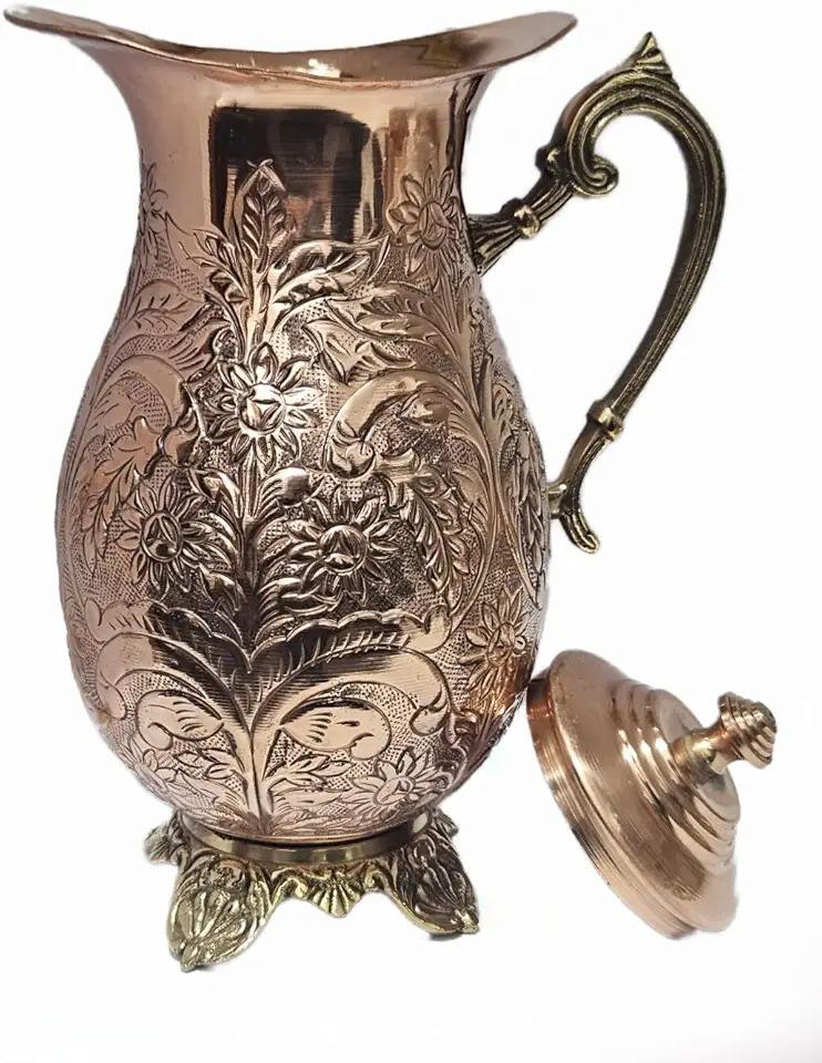 เหยือกทองแดงพร้อมแก้วน้ำสองใบชุดภาชนะดื่มทองแดงบริสุทธิ์สำหรับห้องครัวและอุปกรณ์ตกแต่งโต๊ะ