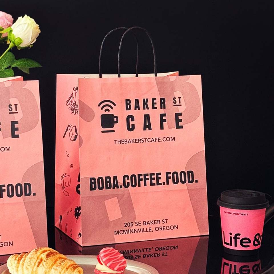 ปรับแต่งถุงกระดาษคราฟท์คุณภาพสูงเป็นมิตรกับสิ่งแวดล้อมสำหรับร้านกาแฟแบบซื้อกลับบ้าน พร้อมโลโก้ของคุณเองสำหรับเครื่องดื่มและกาแฟ