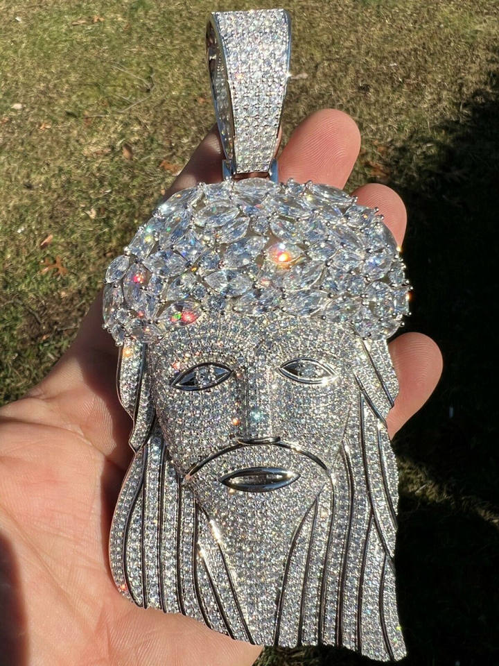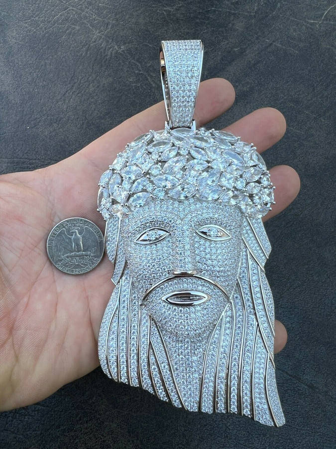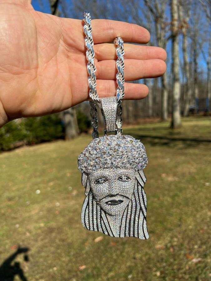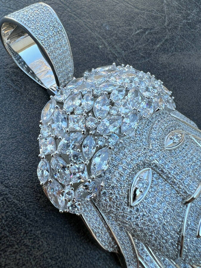 จี้หน้าฮิปฮอปแบบกำหนดเองสำหรับผู้ชาย จี้เพชรโมอิสซาไนต์ VVS ระยิบระยับ เครื่องประดับ 3 มิติ จี้เงินแท้ S925
