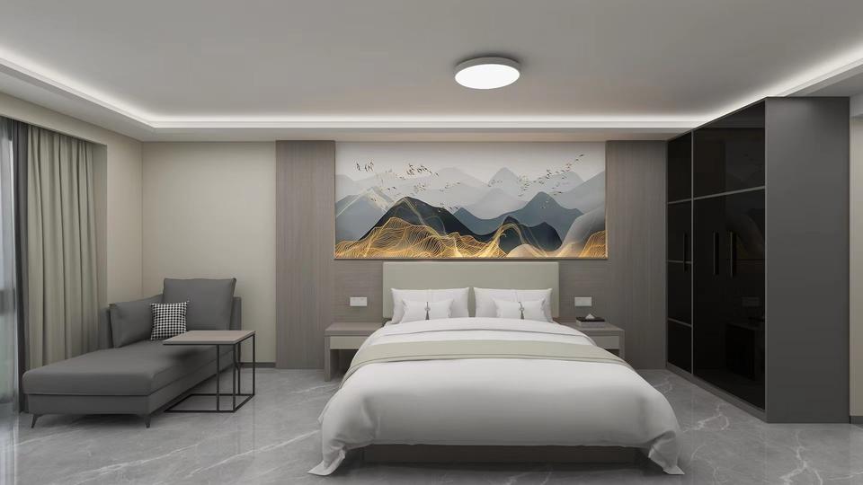 ชุดเฟอร์นิเจอร์ห้องนอนโรงแรมปรับแต่งห้องมาตรฐานอพาร์ทเมนต์เฟอร์นิเจอร์เต็มรูปแบบเตียงคู่เตียงนอนจานแบบเรียบง่าย