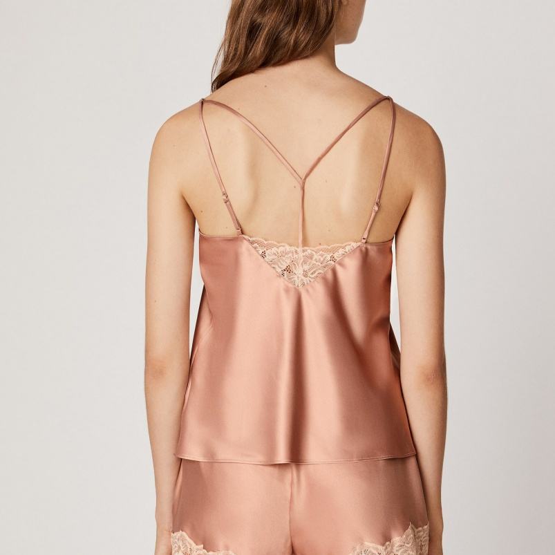 ชุดนอนผ้าซาตินแต่งลูกไม้แบบสั้นสำหรับผู้หญิง