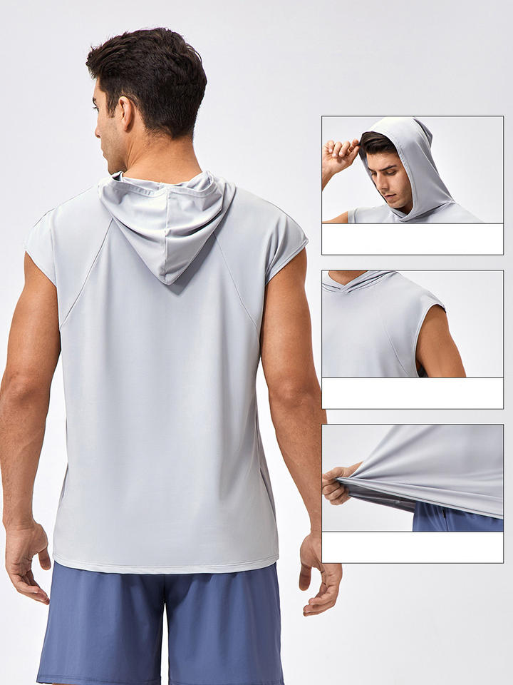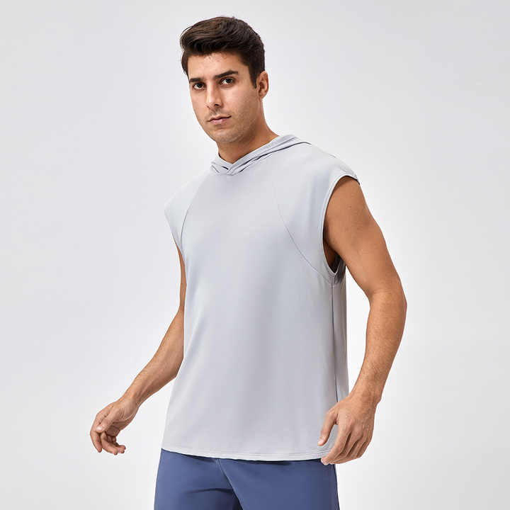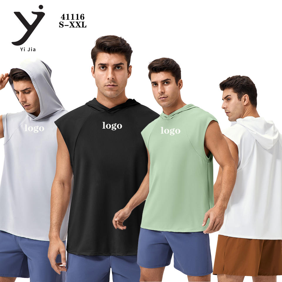 เสื้อกั๊กมีฮู้ดแขนกุดมีฮู้ดสำหรับผ่อนคลายเสื้อกล้ามไซส์ใหญ่พิเศษออกแบบโลโก้ได้ตามต้องการ