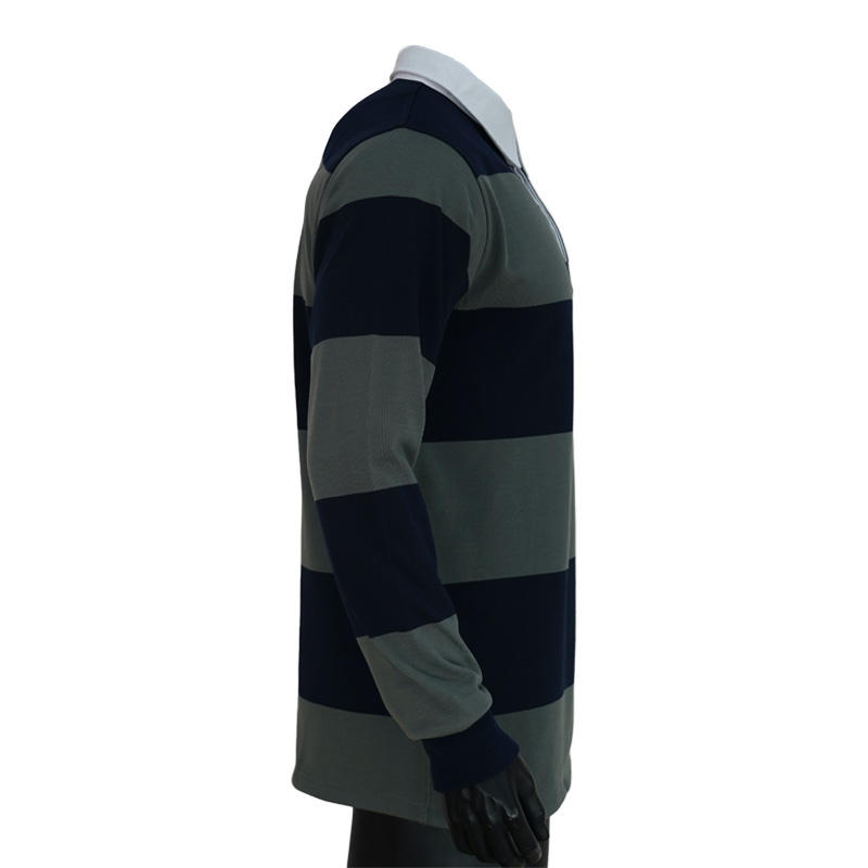 Customize Logo Long Sleeve Polo Striped Cotton Rugby Polo Shirts Embroidery Long Sleeves T Shirt for Men