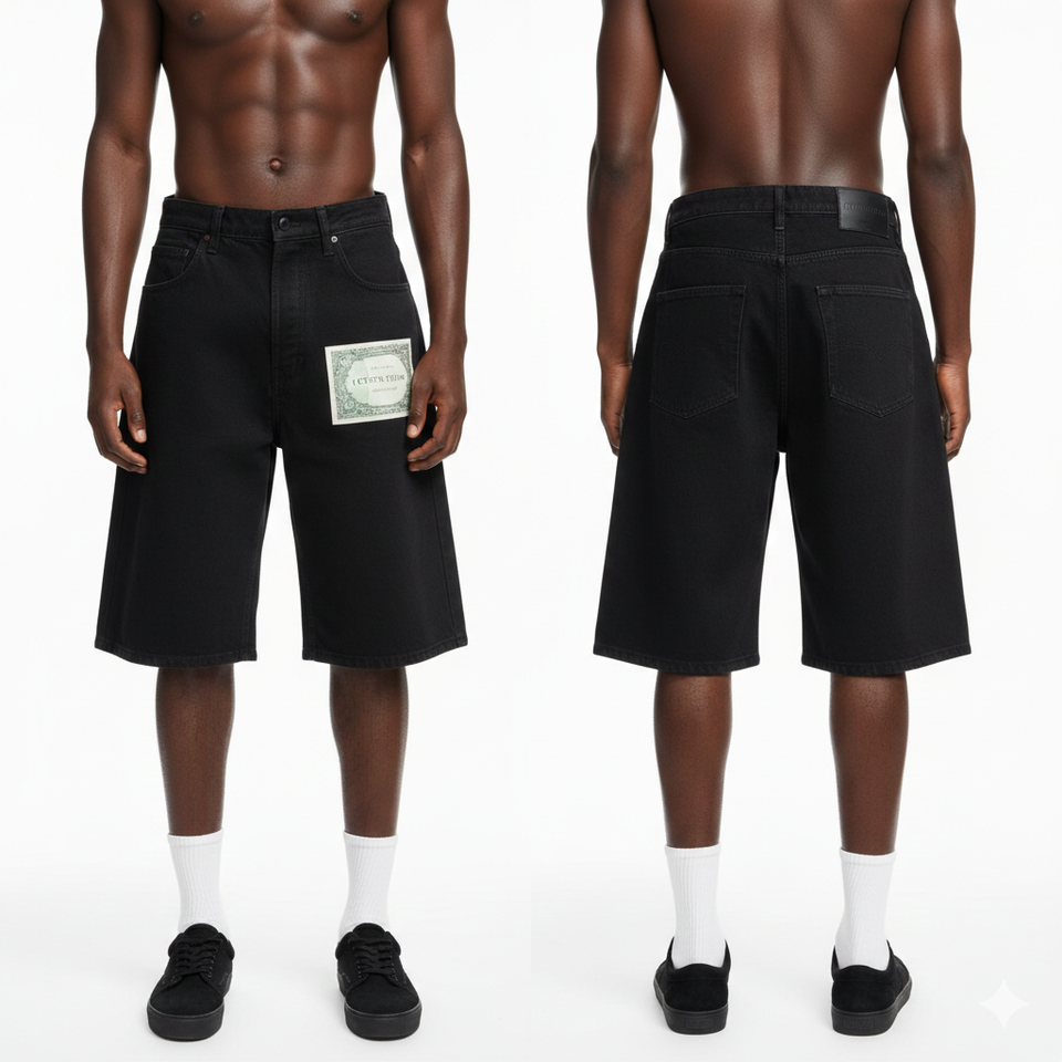 กางเกงยีนส์ขาสั้นผู้ชายสไตล์สตรีทแฟชั่น แต่งโลโก้ได้ ทรงหลวม ใส่ได้ทั้งผู้ชายและผู้หญิง ผ้าหนา