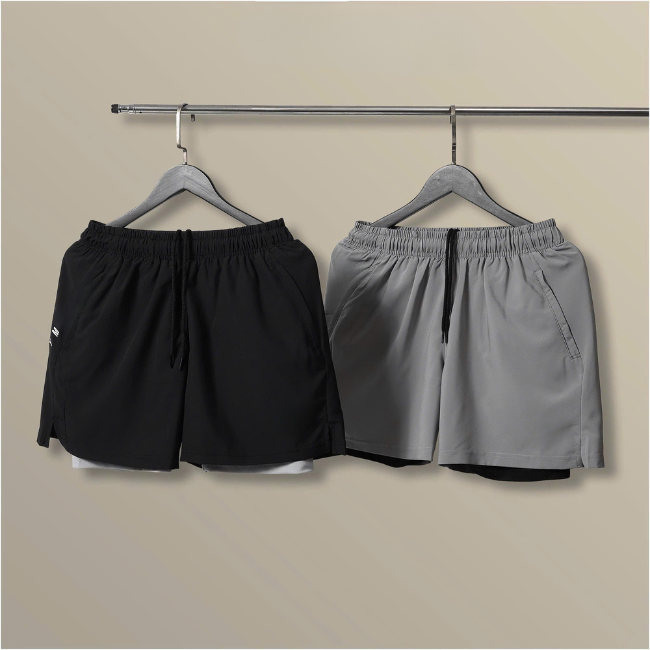กางเกงกีฬาขาสั้นผู้ชายผ้าคอตต้อนแบบมีเชือกผูก5นิ้วแห้งเร็วแบบมีตะเข็บ