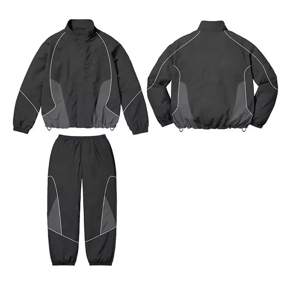 ชุดวอร์มกันลมสำหรับผู้ชาย ปรับแต่งโลโก้ได้ กันน้ำ น้ำหนักเบา ผลิตจากโพลีเอสเตอร์และไนลอน เหมาะสำหรับกิจกรรมกลางแจ้ง