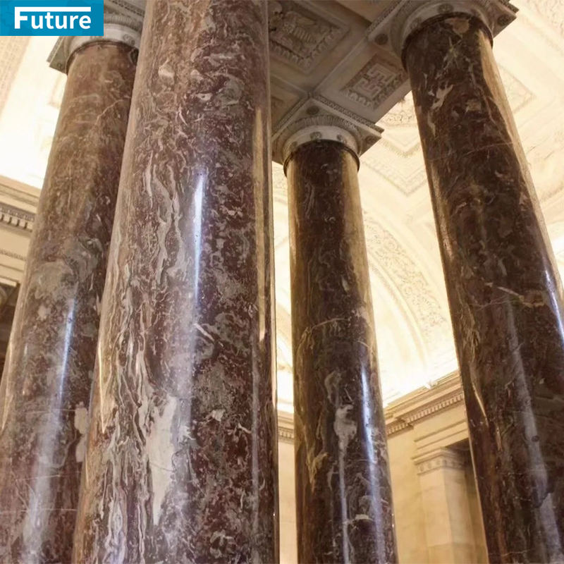 เสาเสาหินหินอ่อนสีแดงแบบโรสโซ่สำหรับโครงการตกแต่งล็อบบี้โรงแรมวิลล่า