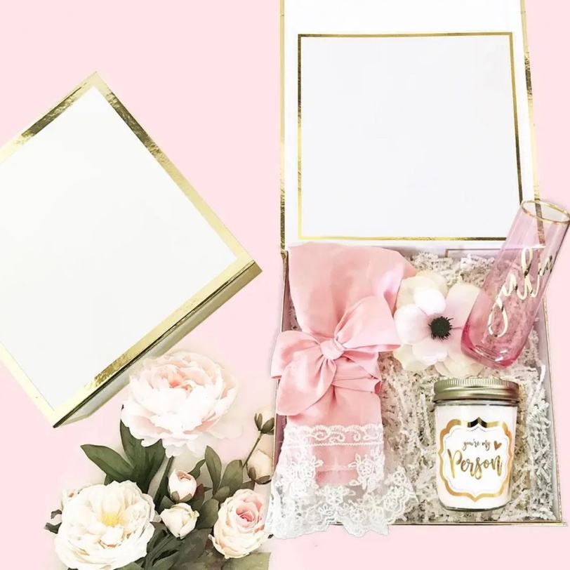กล่องของขวัญแข็งแรงหรูหราเป็นมิตรกับสิ่งแวดล้อม พร้อมฝาปิดแม่เหล็กแบบนูนลาย สำหรับสาวๆ ผู้หญิง วันเกิด เพื่อนเจ้าสาว