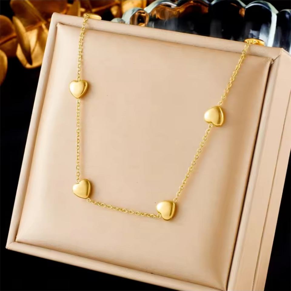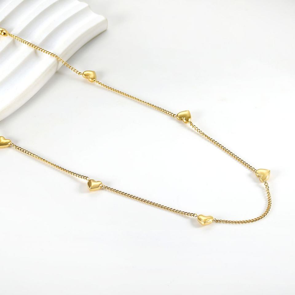 สร้อยคอแฟชั่นมินิมอลแบบไม่ลอกสี ชุบทอง 18k สแตนเลสสตีล พร้อมจี้รูปหัวใจคู่ สำหรับผู้หญิง