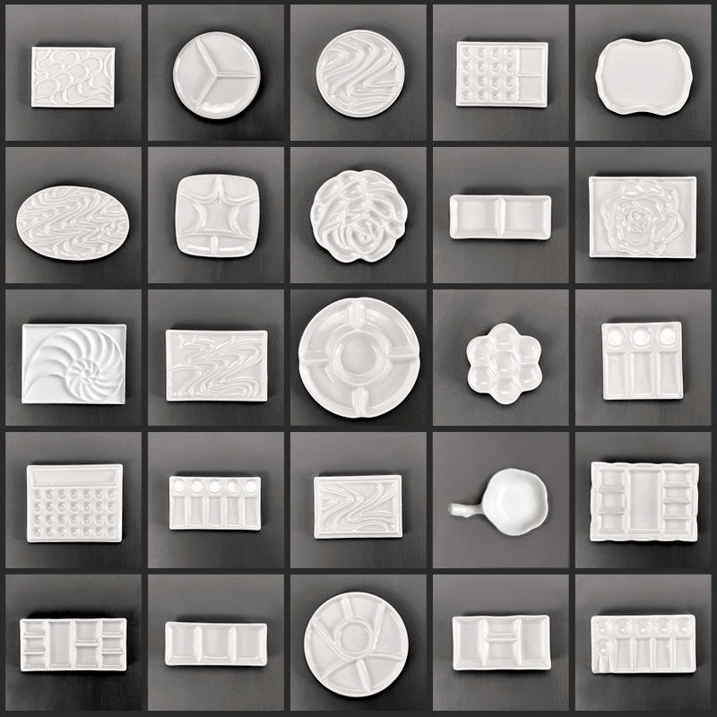 จานสีน้ำทรงสี่เหลี่ยม,จานสีเซรามิกลายดอกไม้ทรงสี่เหลี่ยมผืนผ้าปรับแต่งการผสมรูปวาด