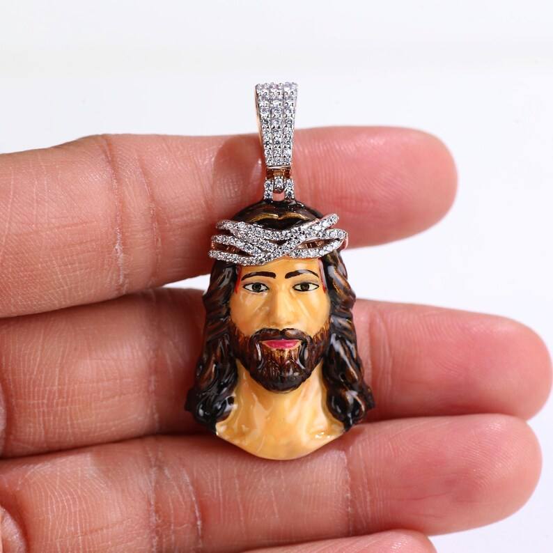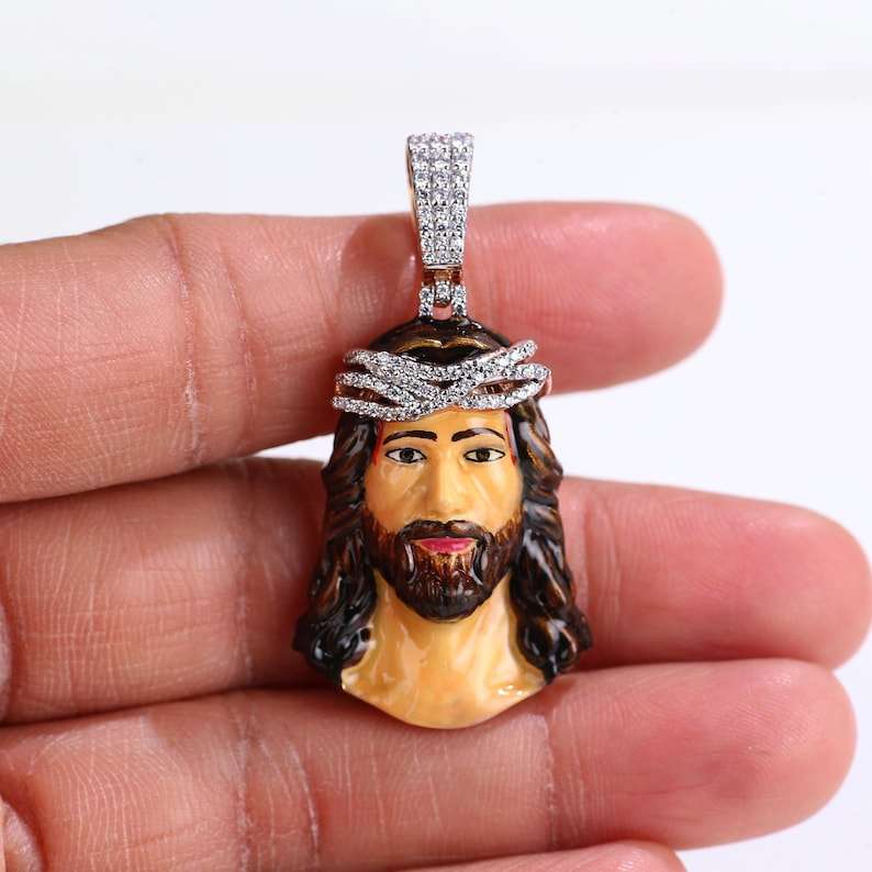 จี้พระเยซูเคลือบอีนาเมลประดับมอยส์ซาไนต์