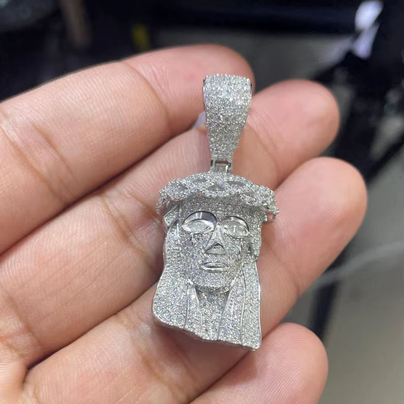 จี้พระเยซูทรงกลมประดับมอสซาไนต์แบบกำหนดเองได้ เงินแท้ 925 สำหรับงานปาร์ตี้ แร็ปเปอร์ เครื่องประดับชั้นดี จี้และชาร์ม