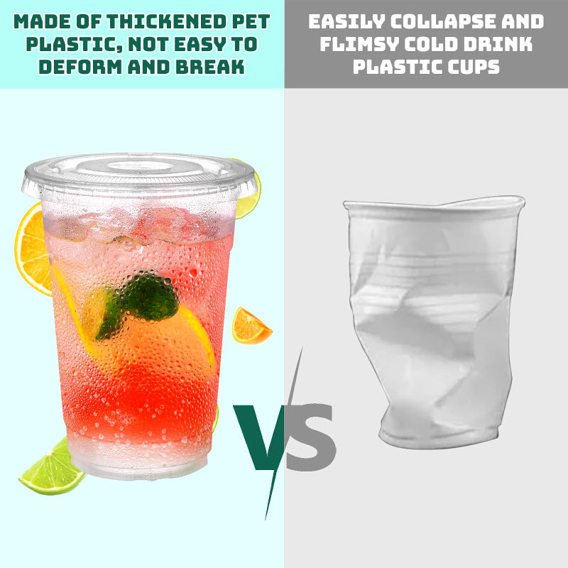 ถ้วยกาแฟพลาสติกแบบใช้แล้วทิ้งพร้อมฝาปิดแบบแบนไม่มีสาร BPA สำหรับเครื่องดื่มเย็นสำหรับสัตว์เลี้ยงสั่งพิมพ์โลโก้ได้