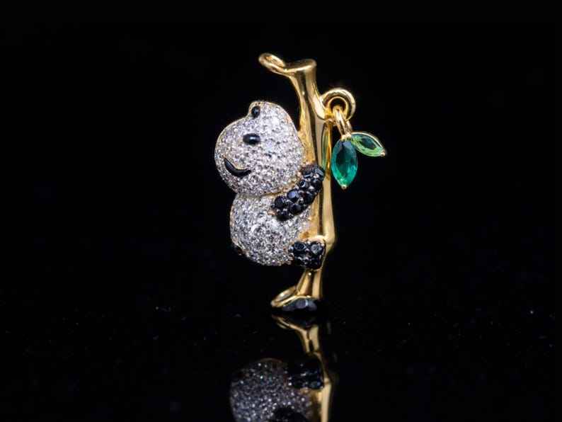 จี้การ์ตูนแพนด้าแบบปรับแต่งได้ สไตล์ฮิปฮอป ประดับโมอิสซาไนต์ น่ารัก รูปสัตว์ สำหรับจี้เงินแท้ 925 และเครื่องประดับ