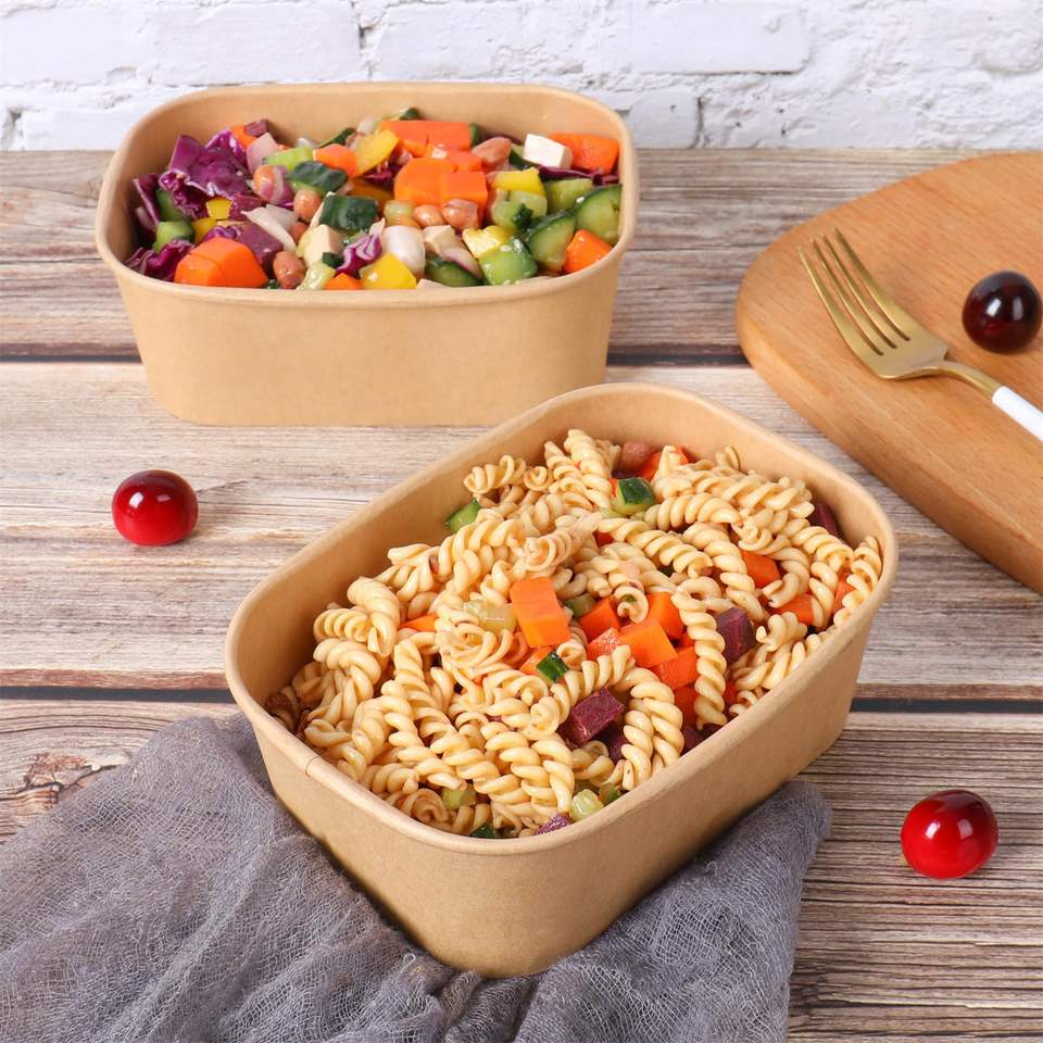 ภาชนะใส่สลัดทรงสี่เหลี่ยมผืนผ้าขนาด500มล. 650มล. 750มล. 1000มล. กันน้ำมันแบบใช้แล้วทิ้งพร้อมฝาปิดพิมพ์ลาย