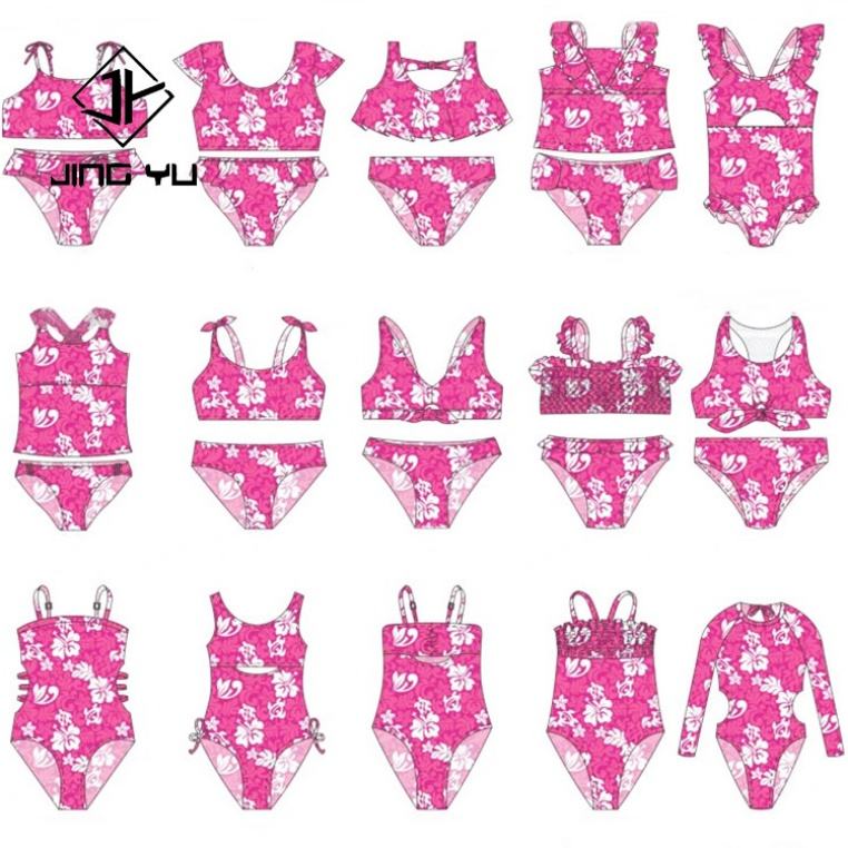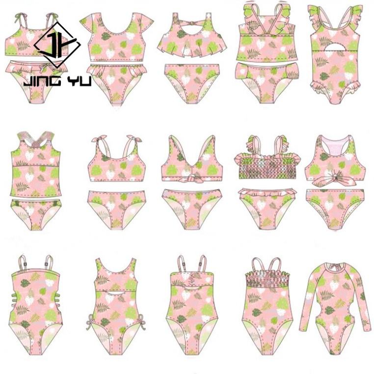 ชุดว่ายน้ำเด็กผู้หญิงแบบสองชิ้นพิมพ์ลายตามสั่งสำหรับฤดูร้อน