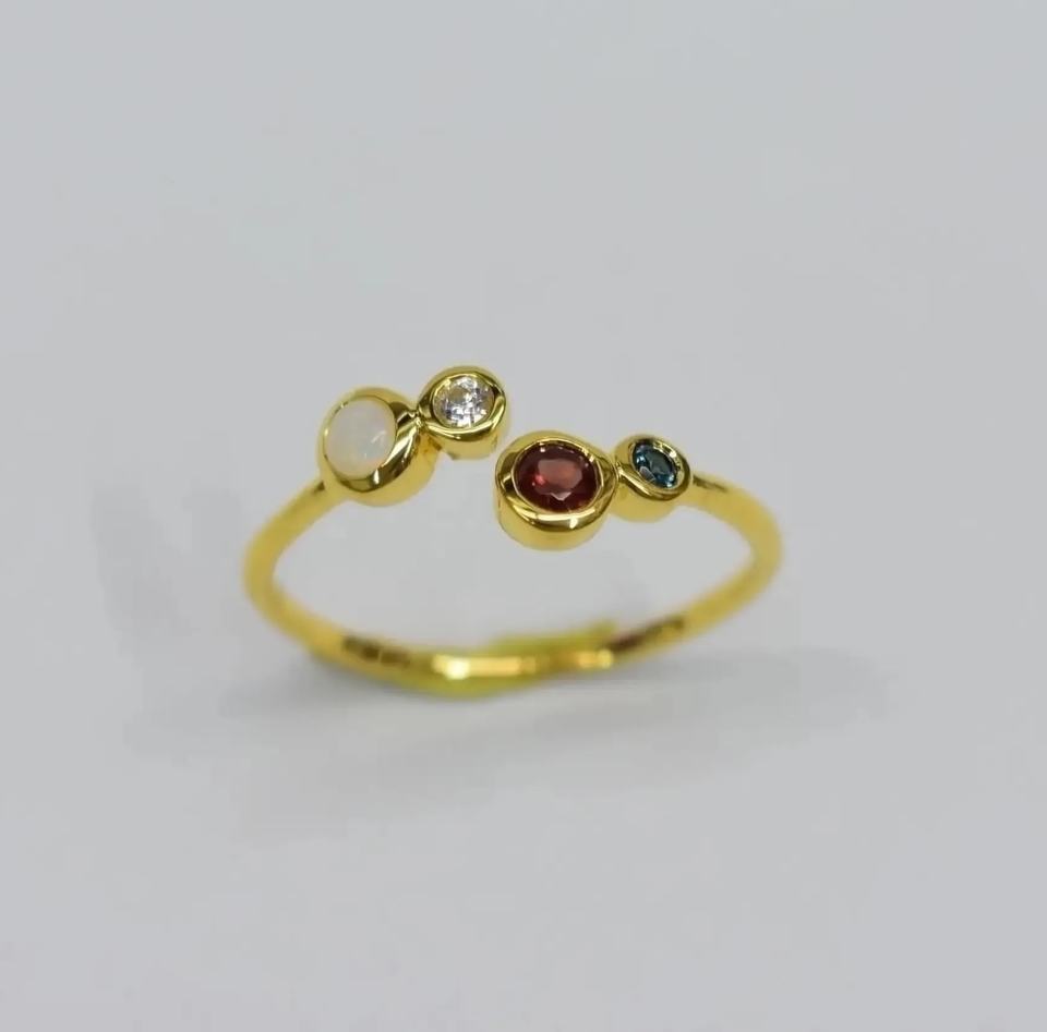 Customize Ready to Ship Wholesale Real 925 Sterling Silver S925 14K Gold Plated Minimal Natural Australian Opal and Garnet Ring