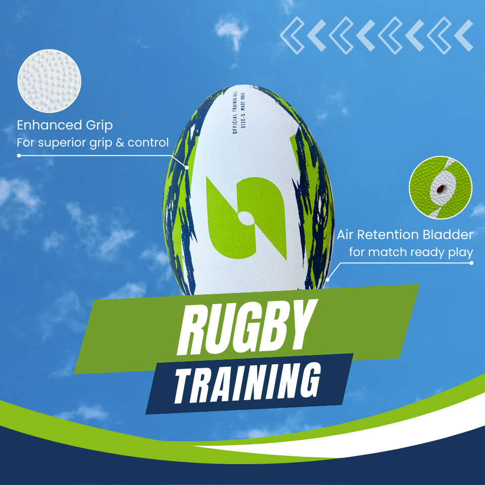 ลูกบอลฝึกซ้อมรักบี้แบบกำหนดเอง ผลิตจากยางสังเคราะห์ที่ทนทานและน้ำหนักเบา เหมาะสำหรับการพัฒนาทักษะและการฝึกซ้อมเป็นทีม