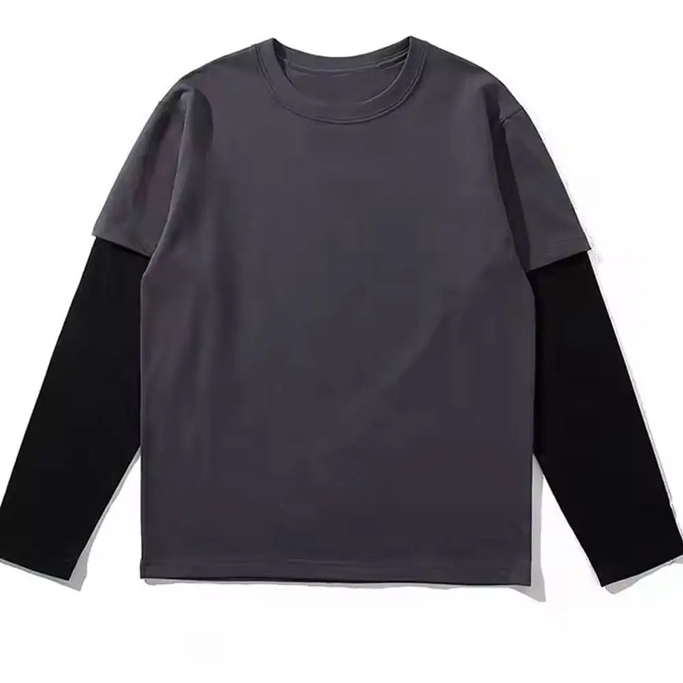Customize Streetwear 100% Cotton Double Layer Long Sleeve Eco-Friendly Breathable Quick Dry Solid Boxy Tee T-Shirts for Men