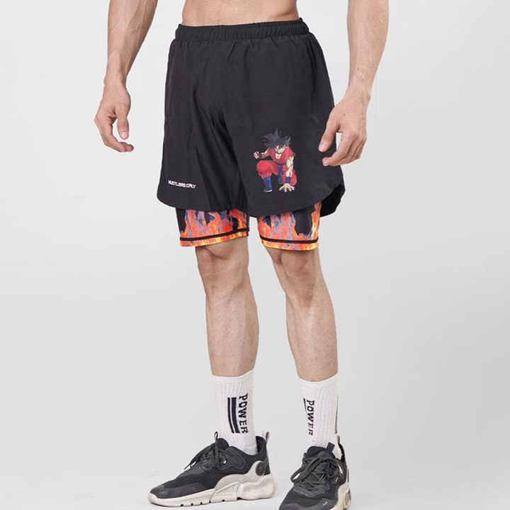 กางเกงขาสั้นเล่นกีฬาแบบสองชั้นสำหรับผู้ชายกางเกงขาสั้นโลโก้พิมพ์ลายสีพื้น