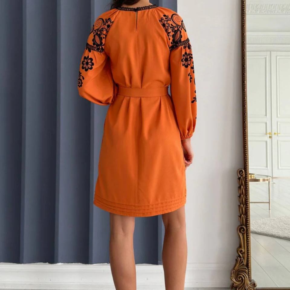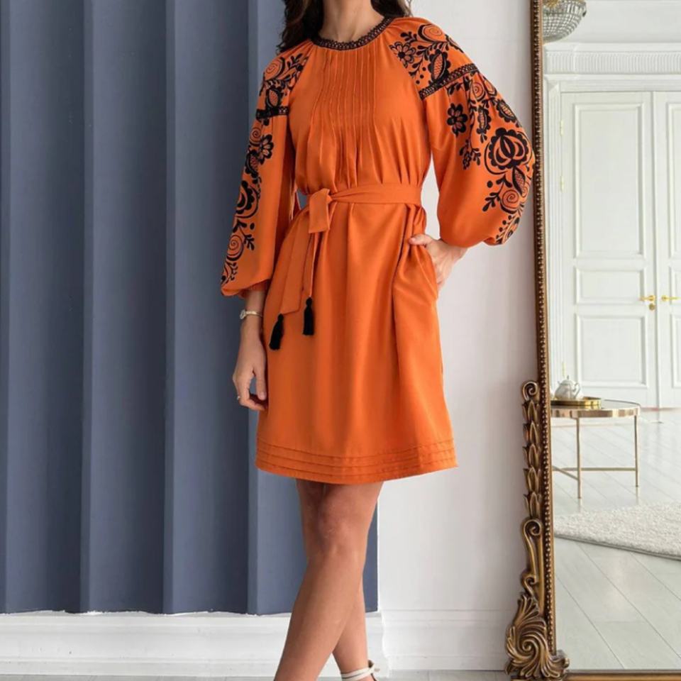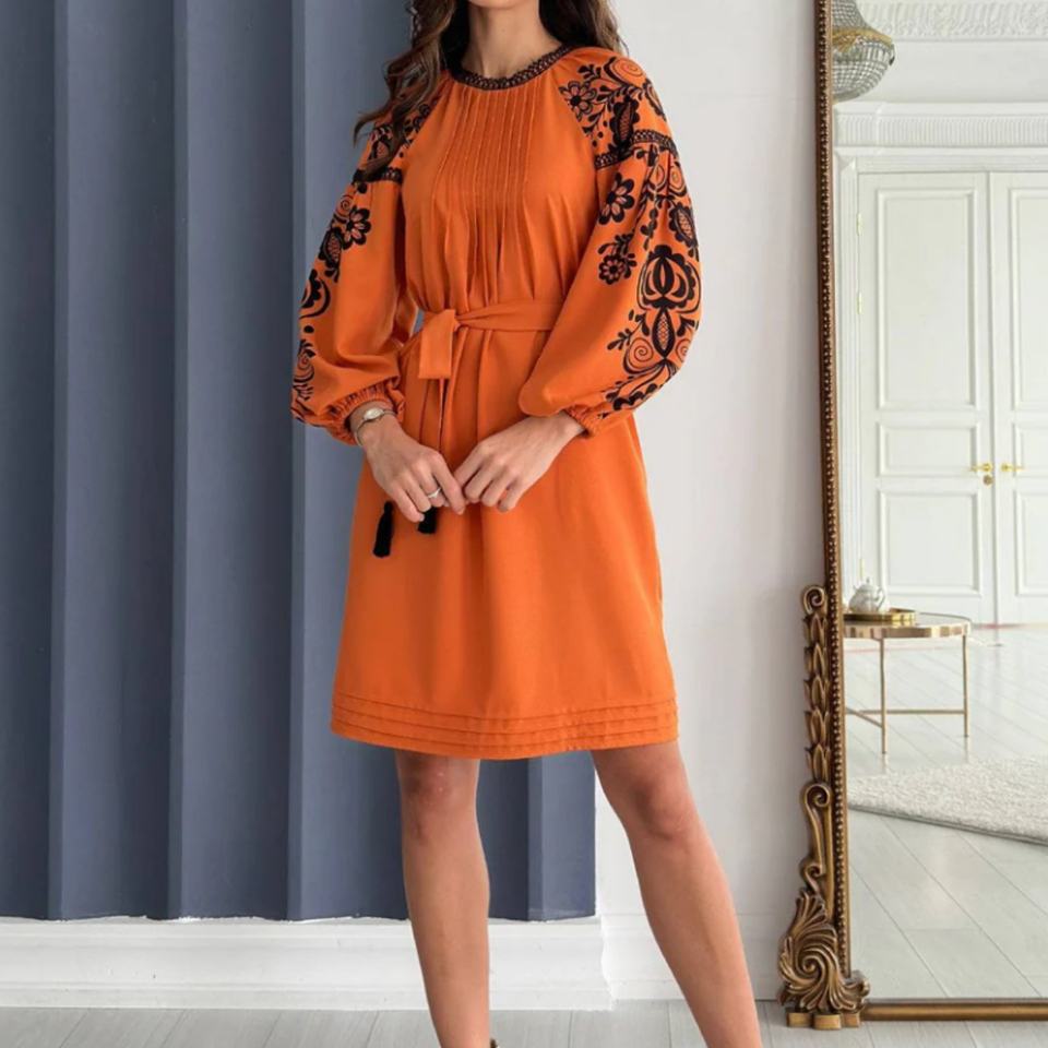 ชุดเดรสผ้าฝ้ายลินินทรงเอ สไตล์ลำลอง คอโอ แขนยาว ความยาวปานกลาง เหมาะสำหรับวันหยุดฤดูร้อนสำหรับผู้หญิง ปรับแต่งได้ตามต้องการ