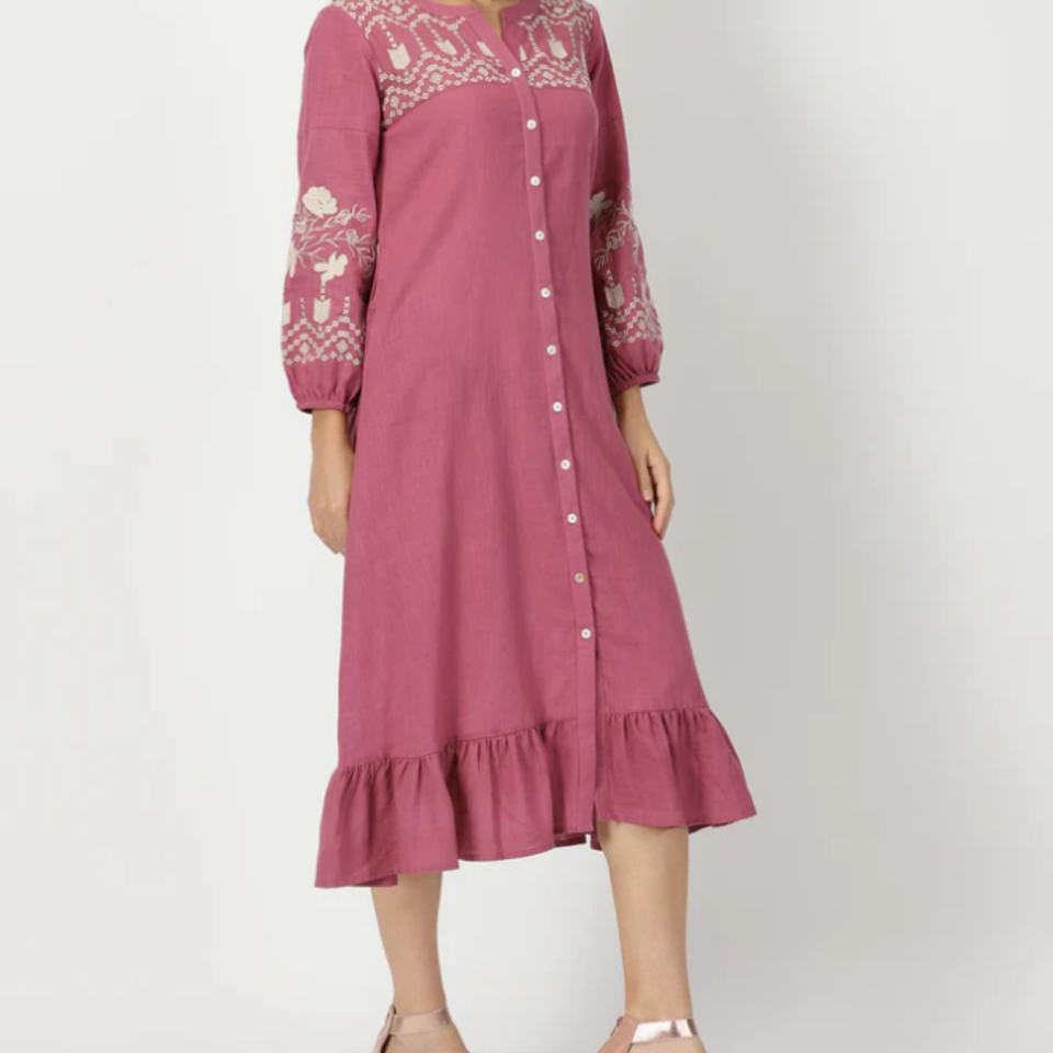 ชุดเดรสผ้าฝ้ายลินินทรงเอ สไตล์ลำลอง คอโอ แขนยาว ติดกระดุม ความยาวปานกลาง สำหรับฤดูร้อน ผู้หญิง ปรับแต่งได้ตามต้องการ