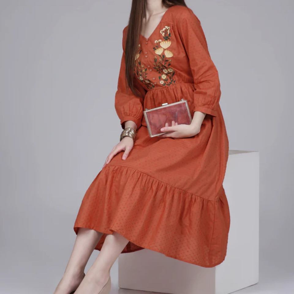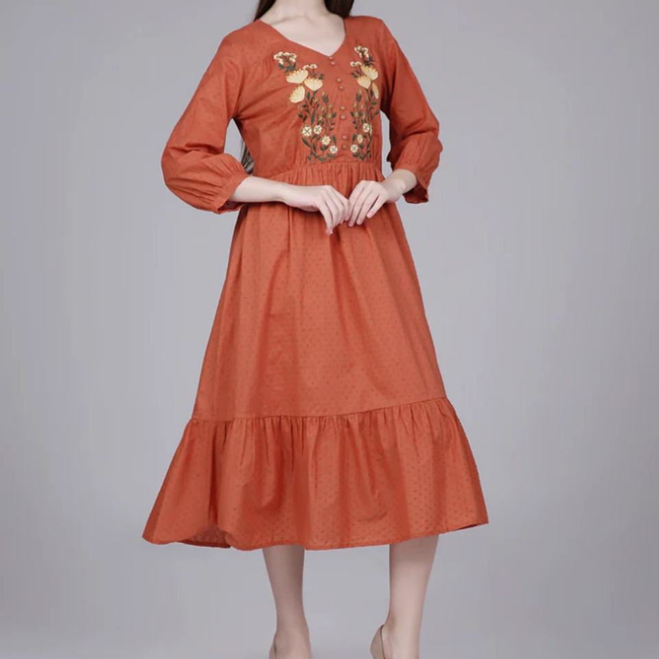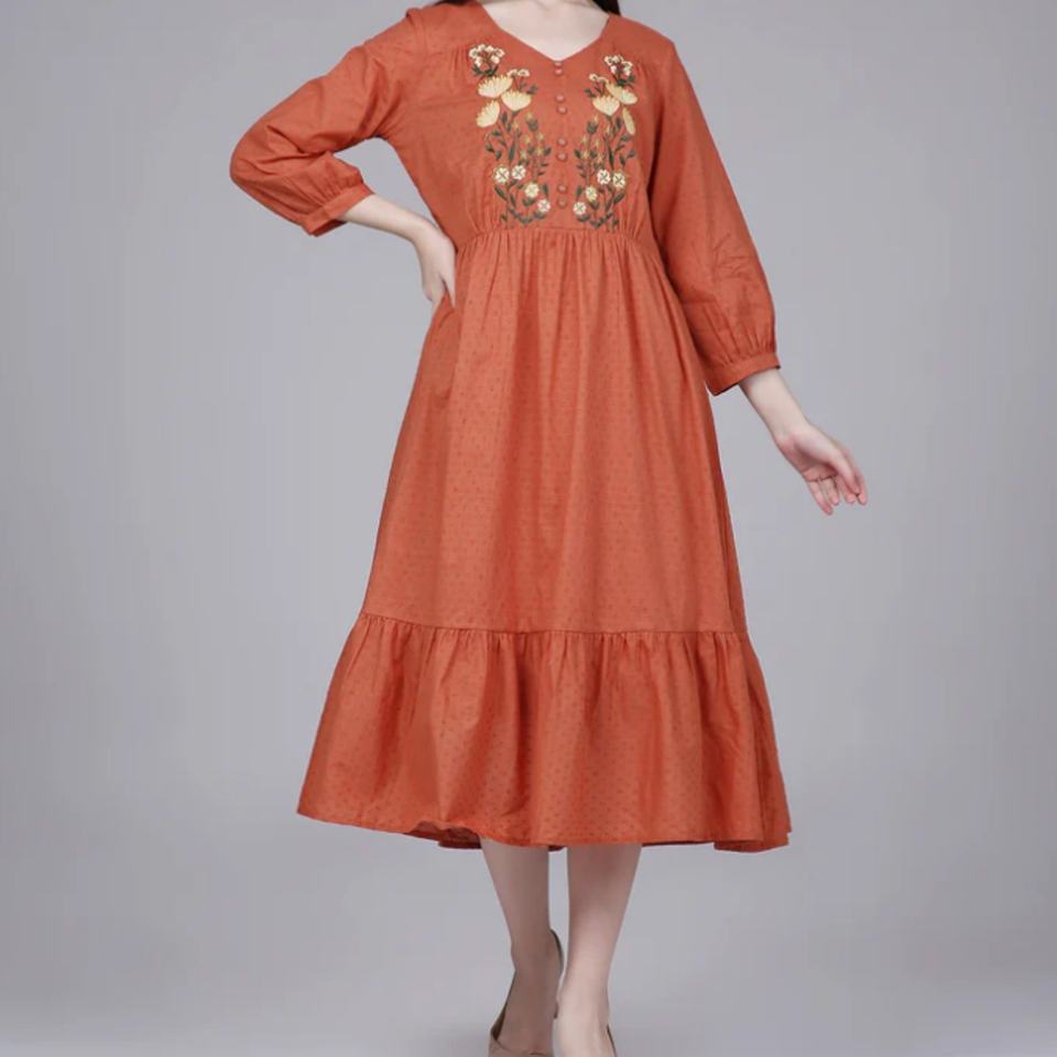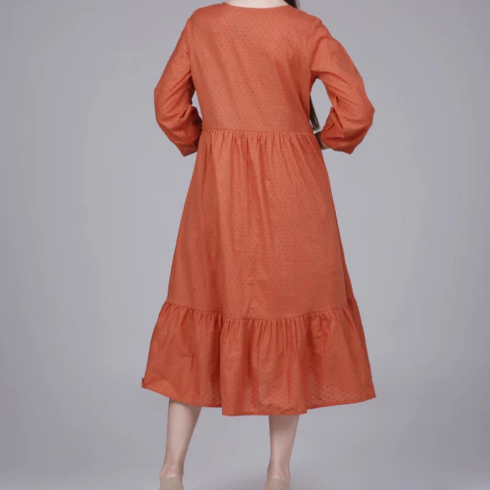 Customize Stylish Cotton Linen Dress V-neck Casual A-line Ruffled Long Sleeves Midi Summer Dress for Women