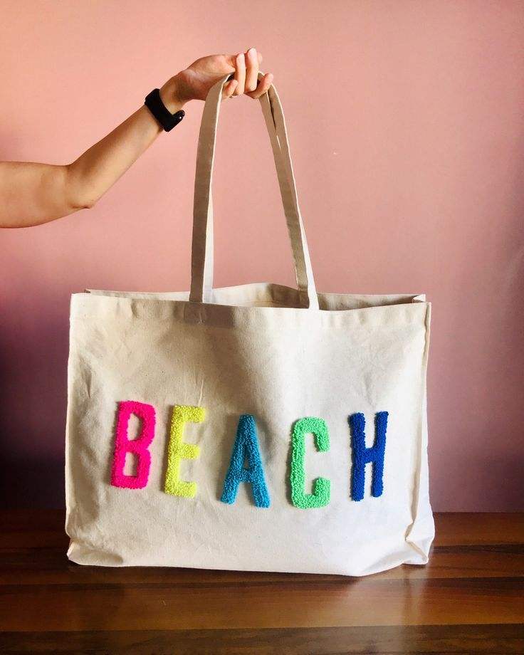 กระเป๋าผ้าแคนวาสปักลายดอกเชนิลล์แบบกำหนดเอง กระเป๋าสะพายไหล่ กระเป๋าถือแบบใช้ซ้ำได้ กระเป๋าช้อปปิ้ง กระเป๋าชายหาดสำหรับผู้หญิง