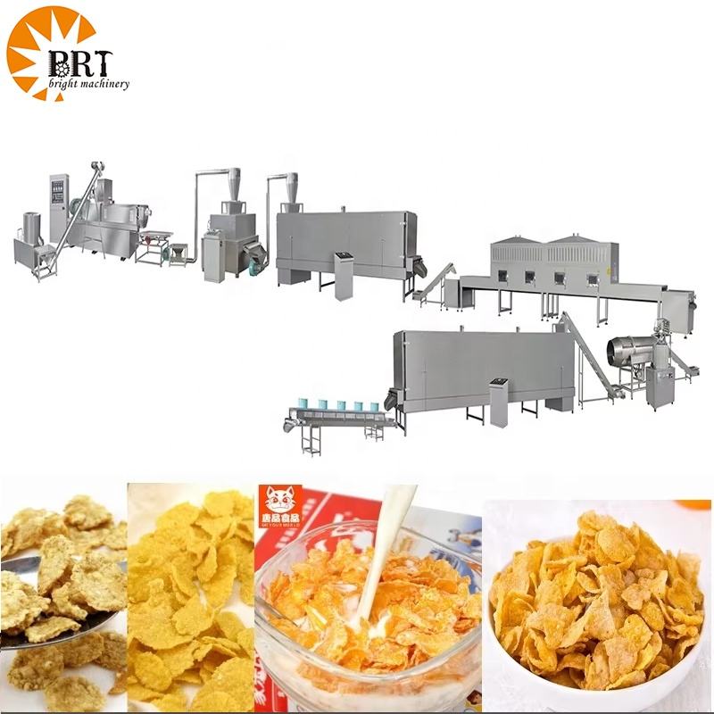 เครื่องผลิตเกล็ดข้าวโพดซีเรียลอาหารเช้าแบบสกรูคู่เครื่องผลิตธัญพืชข้าวโอ๊ตบด