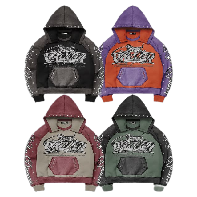 สไตล์:ชุดเซ็ตเสื้อฮู้ดและกางเกงขายาวทรงขาบาน พิมพ์ลายพัฟบนหน้าจอ สไตล์วินเทจ, วินเทจ, Y2K, สตรีท, บ็อกซี่, เสื้อสวมศีรษะ, ซิปขึ้น