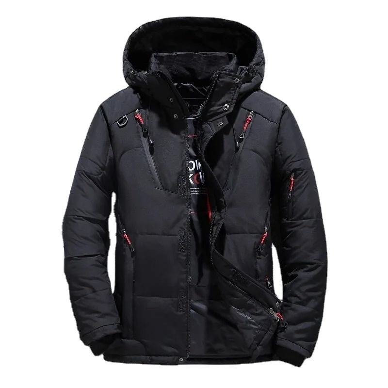 แจ็กเก็ตฤดูหนาวแบบลำลองกันน้ำปรับแต่งได้แจ็กเก็ตมีฮู้ดซิปสำหรับผู้ชายแจ็คเก็ตขนเป็ดเทรนด์