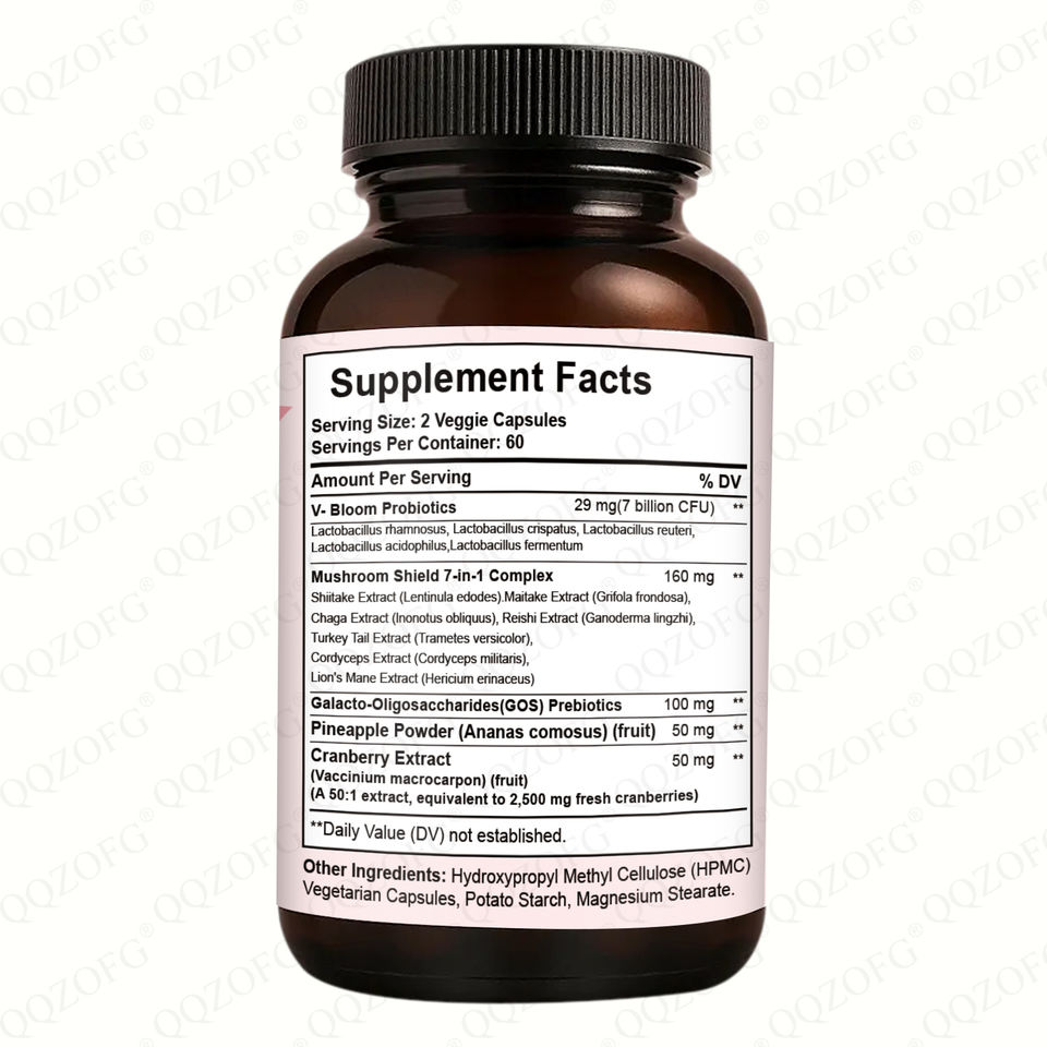 วี-บลูม โพรไบโอติกส์, คอมเพล็กซ์เห็ดชีลด์ 7-in-1, สารสกัดแครนเบอร์รี่, ผงสับปะรด (Ananas comosus) (ผลไม้), Galacto-Oligosaccharides (GOS) พรีไบโอติก